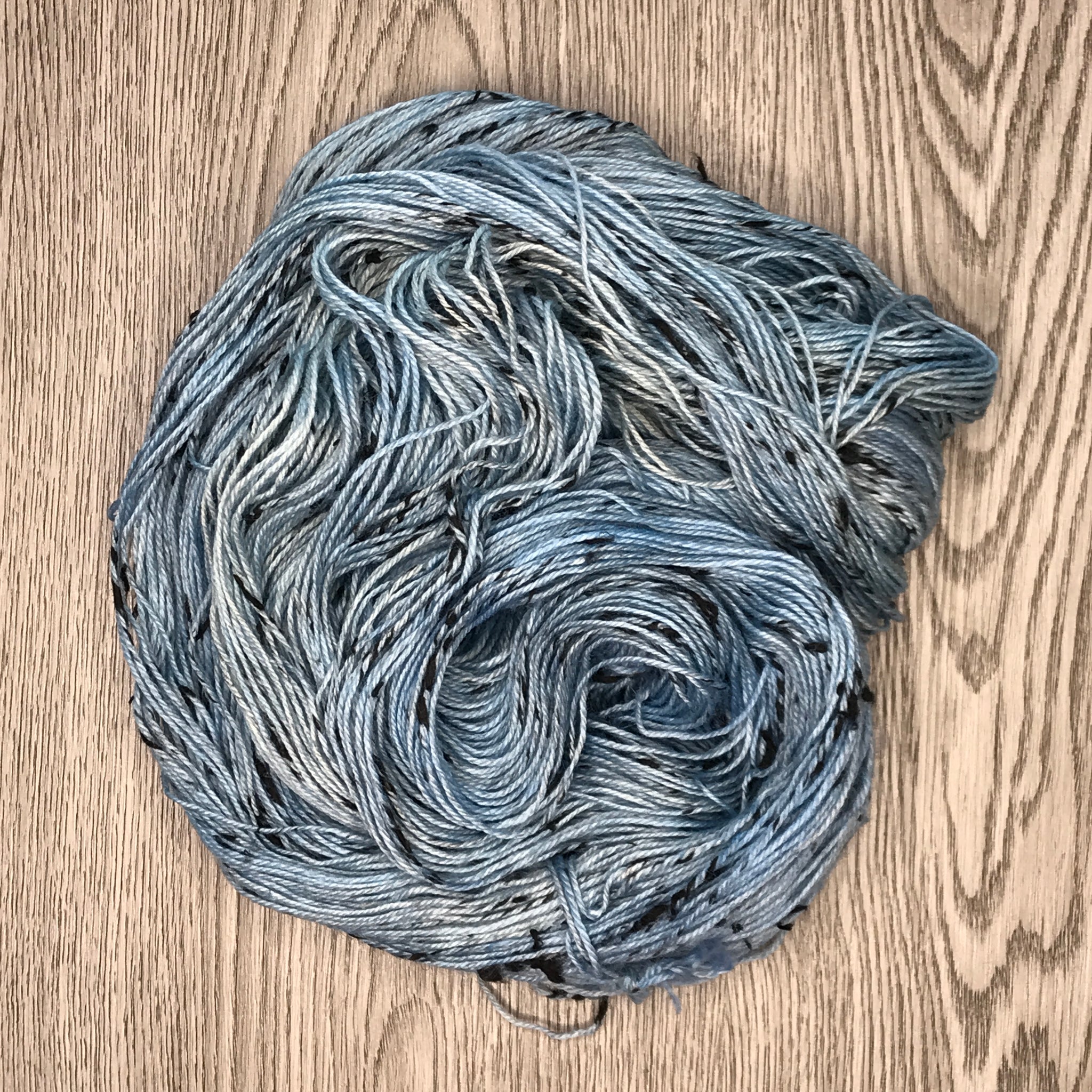 Mix: 80% Super-wash Merino Wool 20% Black Neps 115g /420 yards. For best results, hand wash in cold, lay flat to dry. Minimal bleeding may occur with the first few washes.